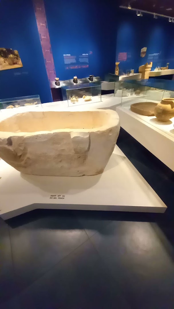 סיור מקסים שמכניס ומלמד אותנו על התרבות הפלשתית באזור סביב התקופה המקראית. לדעתי האישית הסיור מתאים לילדי גן מאזור גיל טרום חובה עד כתה ו'. הסיור במוזיאון מורכב משתי קומות. קומת הכניסה מכילה סיבוב המלמד על התרבות הפלשתית, הבישול, הפולחן והקרבות למול האימפריה המצרית. לאורך הקומה יש לוחות אינטראקטיבית שניתן לתת לילדים לשחק בהם. יש אפשרות לברוק בהתחלה קוד שמאפשר להפעיל קבצי שמיעה קצרים המותאמים לילדים לפי ההתקדמות במוזיאון. הקומה התחתונה מחולקת לשני אגפים. אגף המזון שמראה את התפתחות המזון (לא העמקתי שם) ואגף המשתה שבו יש כל מיני אביזרי תחפושות של פלשתים שבו ניתן לחפש ולשחק עם הילדים שבו יותר התמקדנו.