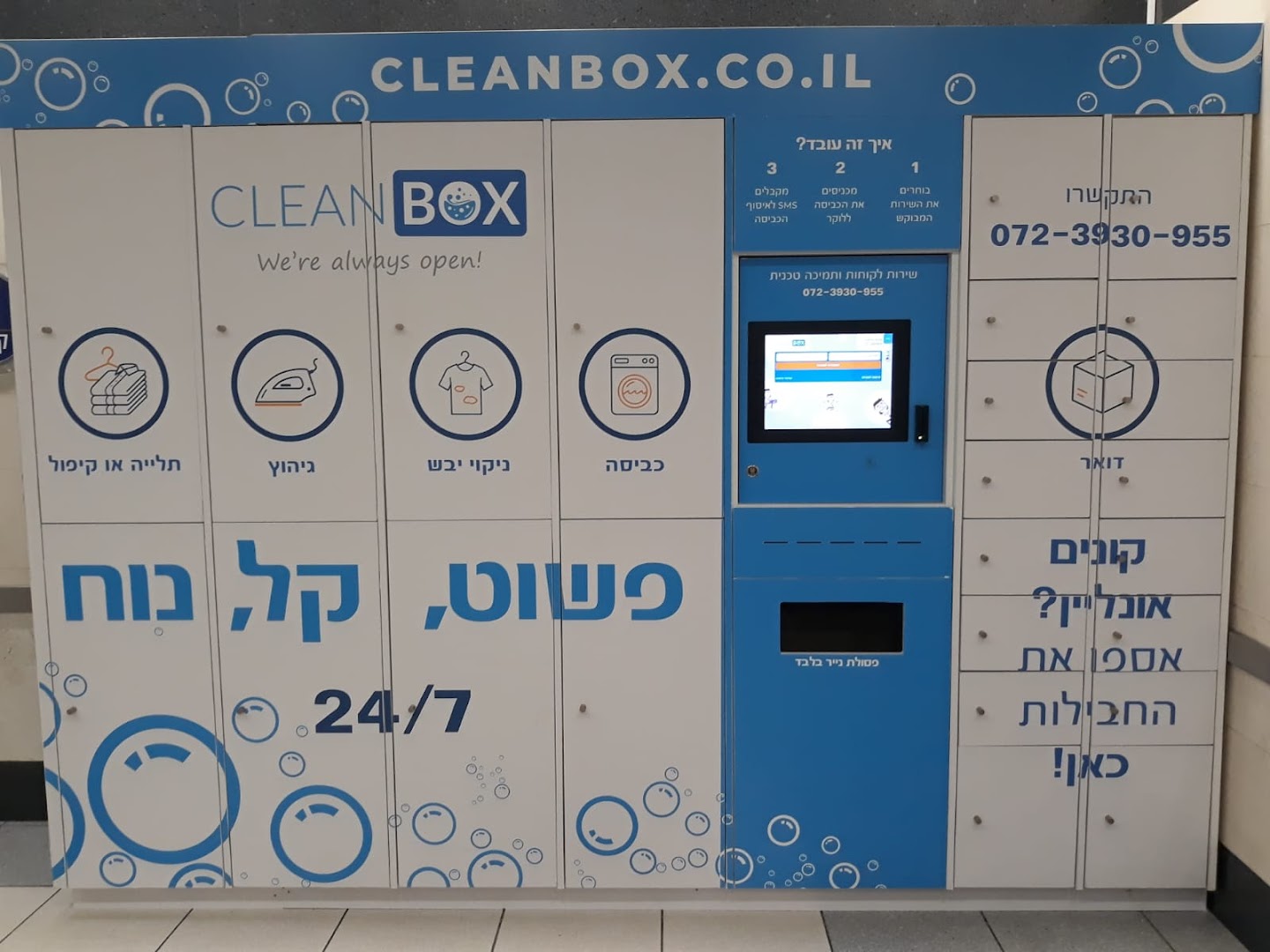 מהן שעות הפתיחה של מכבסת קלין בוקס?