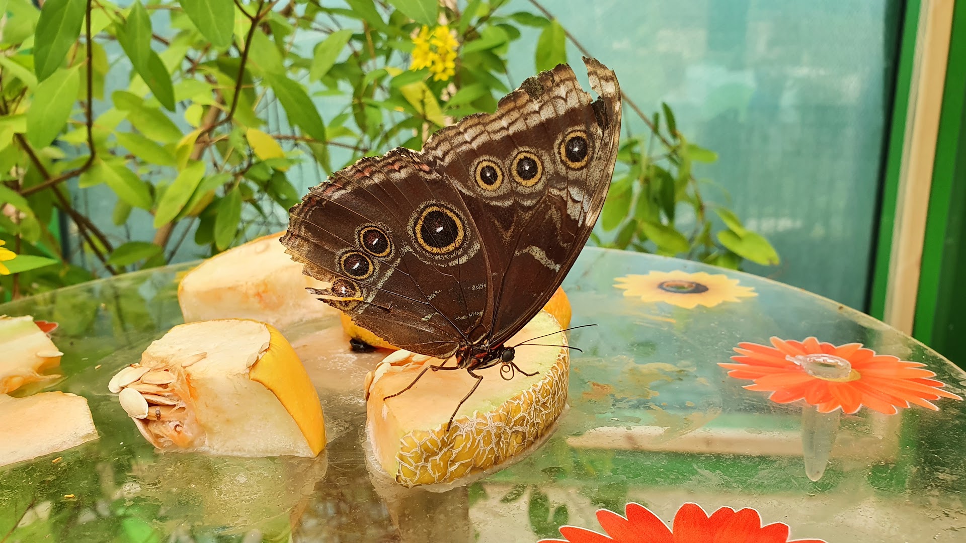 Бабочек не очень много, место небольшое, но очень красиво и атмосферно. Единственный минус - очень душно и жарко. Но, наверное такой климат нужен бабочкам. Кроме бабочек есть и другие насекомые в отдельных домиках. И много-много растений. Всё буквально утопает в зелени.