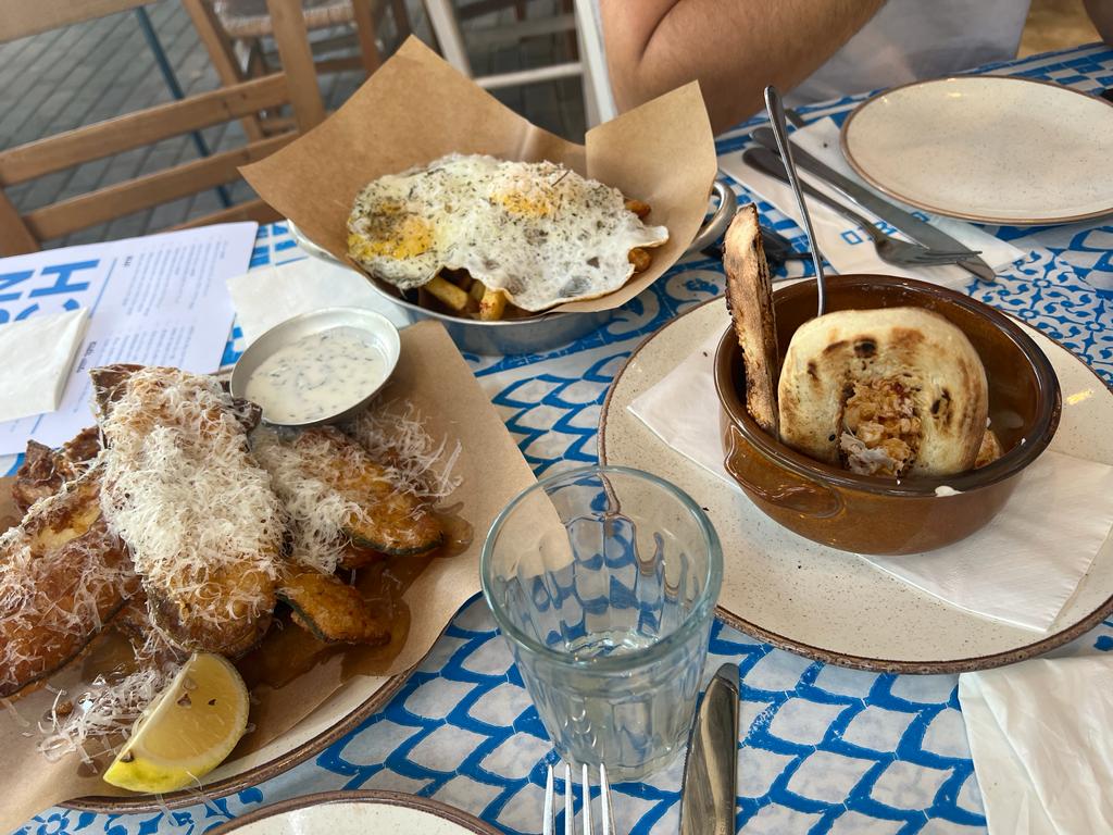 מאכזב מאוד. האוכל פשוט מאוד, יקר ביחס למה שמקבלים ואין קשר לאוכל יווני. לדוגמא: הזמנו מנה עם שם יווני שהמלצר המליץ עליה מאוד. מסתבר שזה סוג של בייגל עם שקשוקה, מנה קטנה מאוד ושילמנו עליה כמעט 70 שח. הציפס היווני זה פשוט צ'יפס רגיל ומעליו ביצת עין וקצת גבינה מגורדת. הקישוא (שהמלצר המליץ מאוד) זה פשוט פרוסות דקות מאוד של קישוא מטוגנות.. מרוב שזה דק טועמים רק פחם. בקיצור, לא מומלץ בכלל ויקר מאוד. אין קשר ליוון למעט המוזיקה והעיצוב.